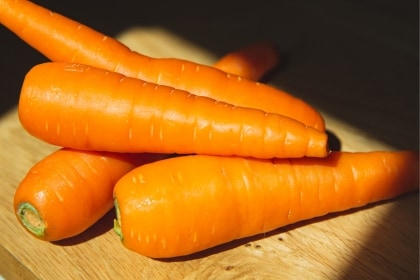 - 紅蘿蔔:含有豐富的維生素A和抗氧化物質,支持狗狗的視力健康並增強免疫力;紅蘿蔔中的纖維對腸道也有益處。